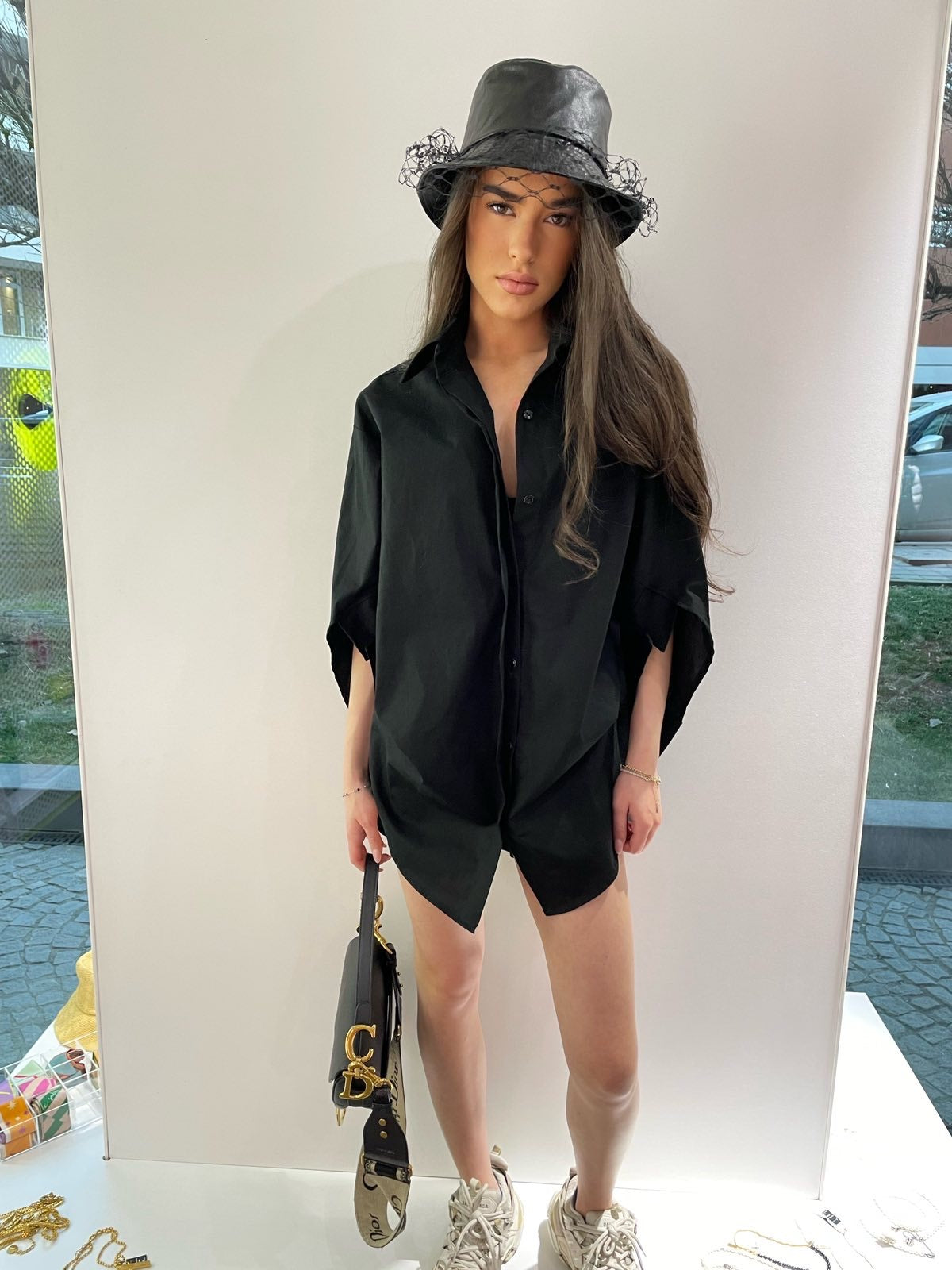 Оversize риза, закопчаване с копчета, ръкав под лакетя.